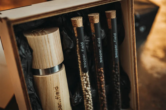 .pepper..field Kampot Pepper Test Tube Set with Scandinavian Grinder gift set