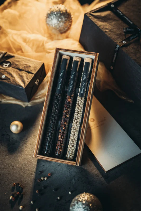.pepper..field Set of test tubes with Kampot pepper gift set