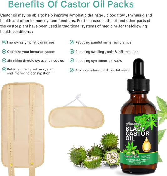 Castor Oil Pack 5 pcs Cotton Flannel & Soft Bands (Organic Castor Oil Included)