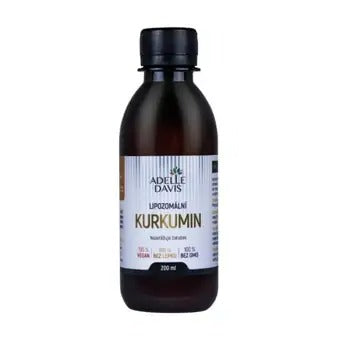 Curcumin in liquid liposomal form. Adelle Davis Liposomal Curcumin contains the natural substance curcumin, which has beneficial effects on our body. Turmeric long plant, which is grown in Southeast Asia, is found in high concentrations in the rhizomes. Its roots have been used for centuries in Ayurveda and traditional Indian medicine. The active ingredients are natural phenols, so- called curcuminoids. Curcumin is one of the most famous . The liposomal form is better absorbed in the intestine and usable by the body, it does not cause nausea. Gluten free. GMO free. 100% vegan.