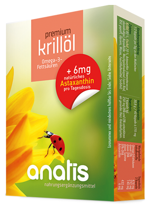 6 mg astaxanthin per daily dose is the maximum daily amount permitted in the EU. Premium krill oil saves you having to buy your own astaxanthin preparation. Krill feed on microalgae, the actual source of the red pigment astaxanthin. It is naturally bound in krill oil and is also added to premium krill oil in a natural form from Haematococcus pluvialis algae, so that each capsule contains 3 mg astaxanthin (other brands often only have astaxanthin in the microgram range). The high astaxanthin content is visually recognizable by the black color (the capsule shell itself is colourless). Astaxanthin is a strong antioxidant and reduces oxidation processes - this is beneficial for product quality, among other things.