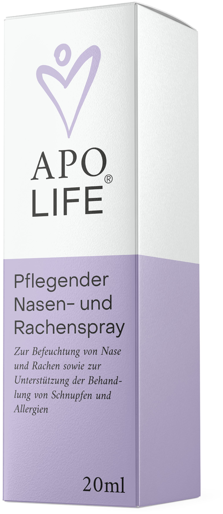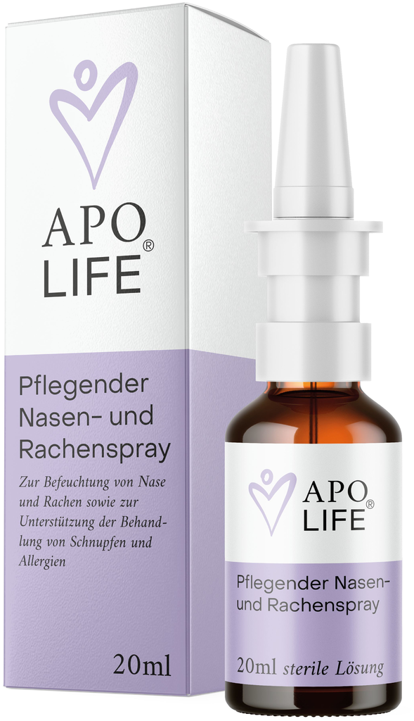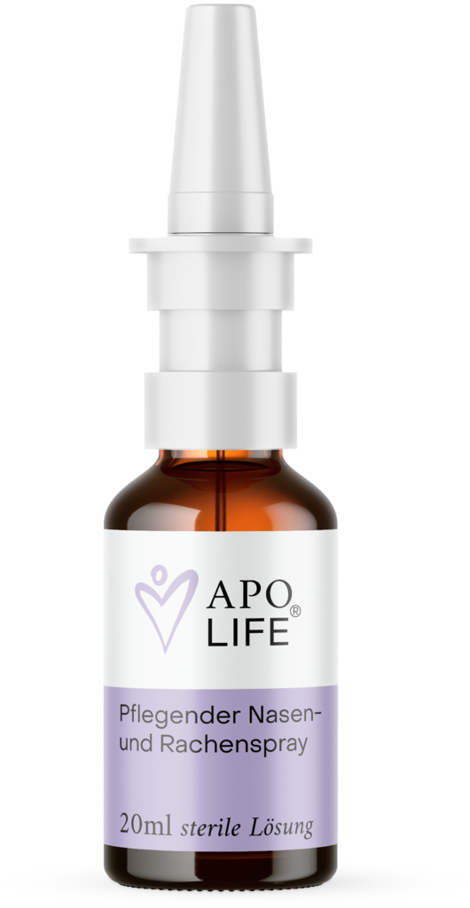 The ApoLife nose and throat spray is used for daily nose and throat hygiene. It keeps the mucous membranes of the nose and throat moist, which supports the cleaning and filtering function of the nose.