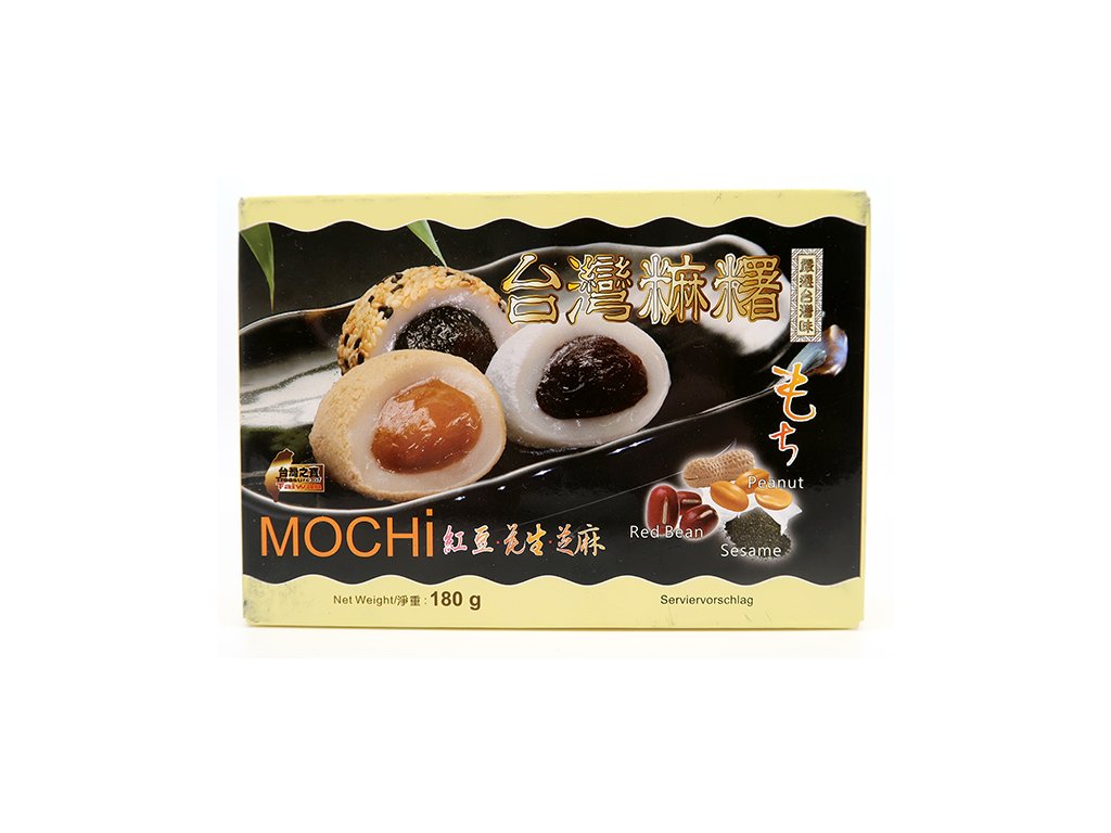 Rice mochi cakes in a unique mix of 3 different flavors (peanuts, red beans, sesame)