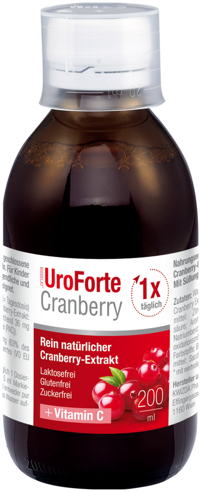 Nutritional information: 15ml liquid (= daily recommendation): cranberry extract 120mg, equivalent to 36mg PAC; Vitamin C 50mg;