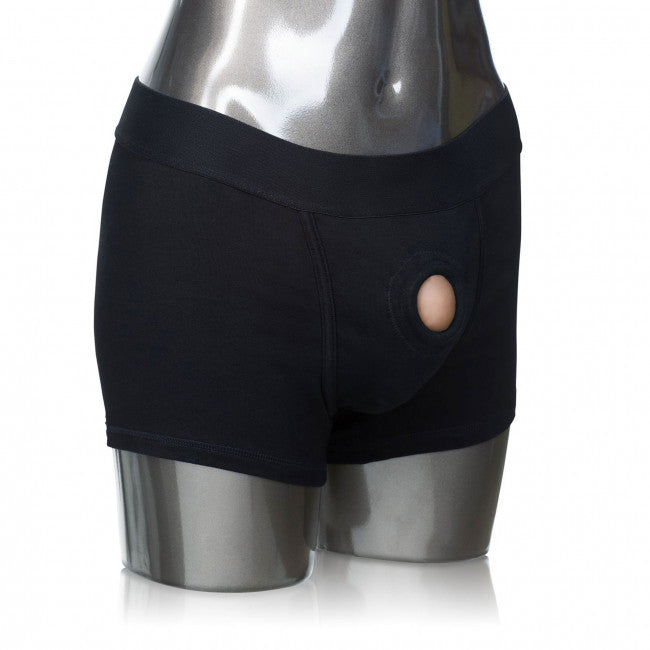 These aren't just any ordinary boxers! They offer support, comfort and a pocket for a dildo or stimulator. Their men's cut is based on classic boxers and the O-ring will serve you as you wish. Fall in love with the nice and stretchy cotton and spandex for maximum comfort.