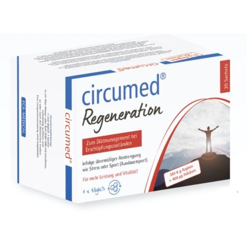 circumed® Regeneration was specially developed for the dietary management of states of exhaustion after stressful situations, endurance sports and for the recovery time after physical interventions and after injury breaks. It contains the natural amino acid L-arginine in high concentration, which, in combination with folic acid, makes a valuable contribution to improving blood circulation and protecting endothelial cells on the inner wall of blood vessels.