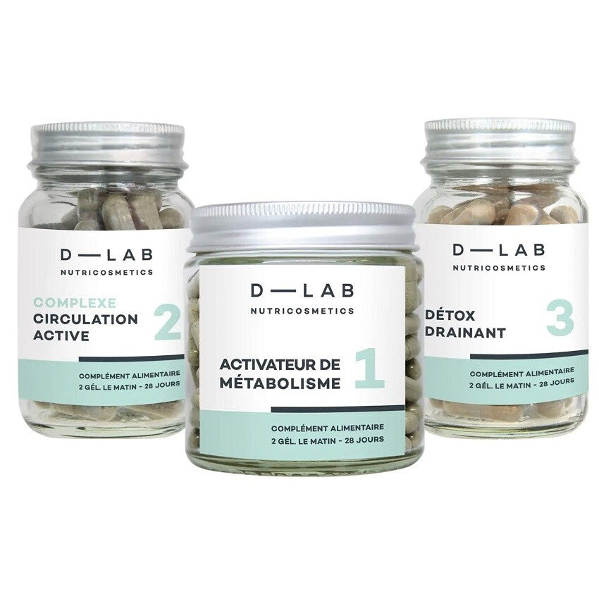 D-LAB Action Capitons is a set of dietary supplements containing Metabolism Activator (56 capsules), Circulation Activation Complex (56 capsules) and Drainage and Detoxification (56 capsules).