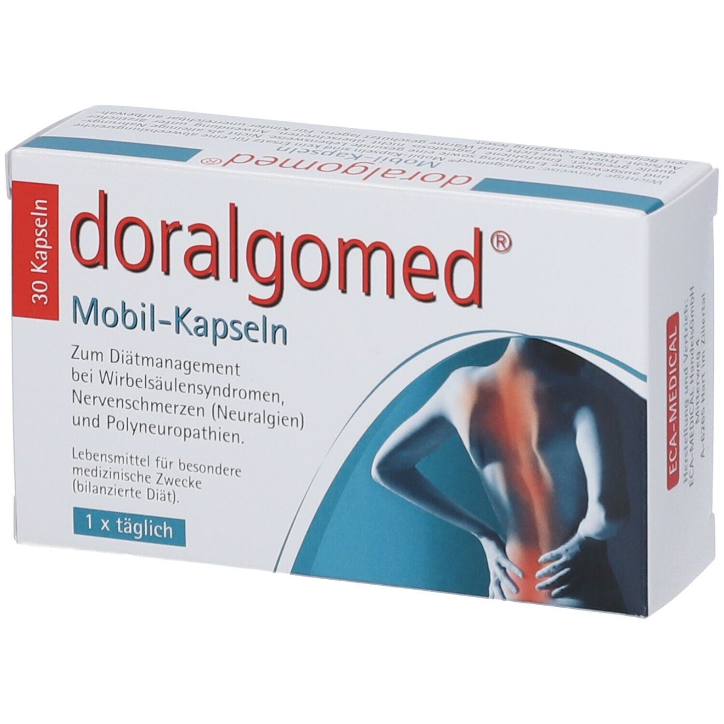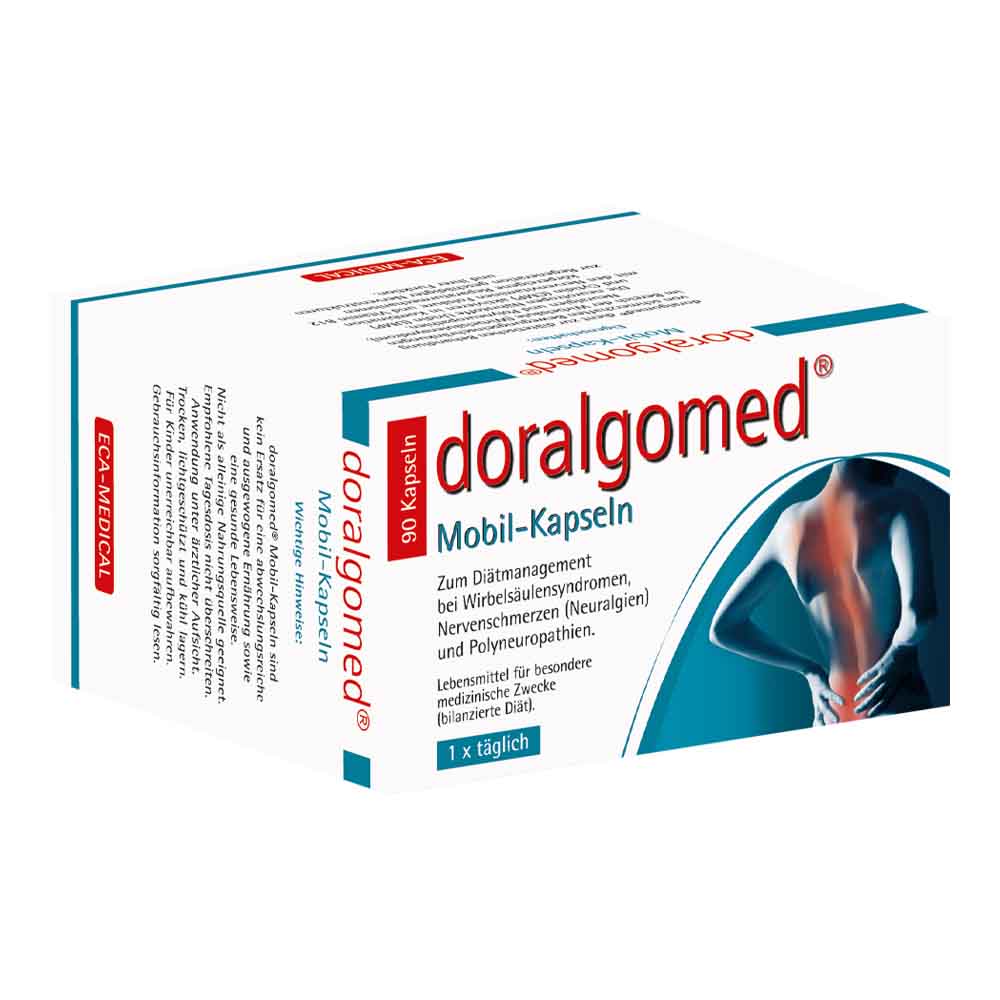 Doralgomed Mobil capsules are used for the dietary treatment of spinal syndromes (e.g. lumbago, cervical spine syndrome, etc.) and polyneuropathies (e.g. diabetic polyneuropathy).
