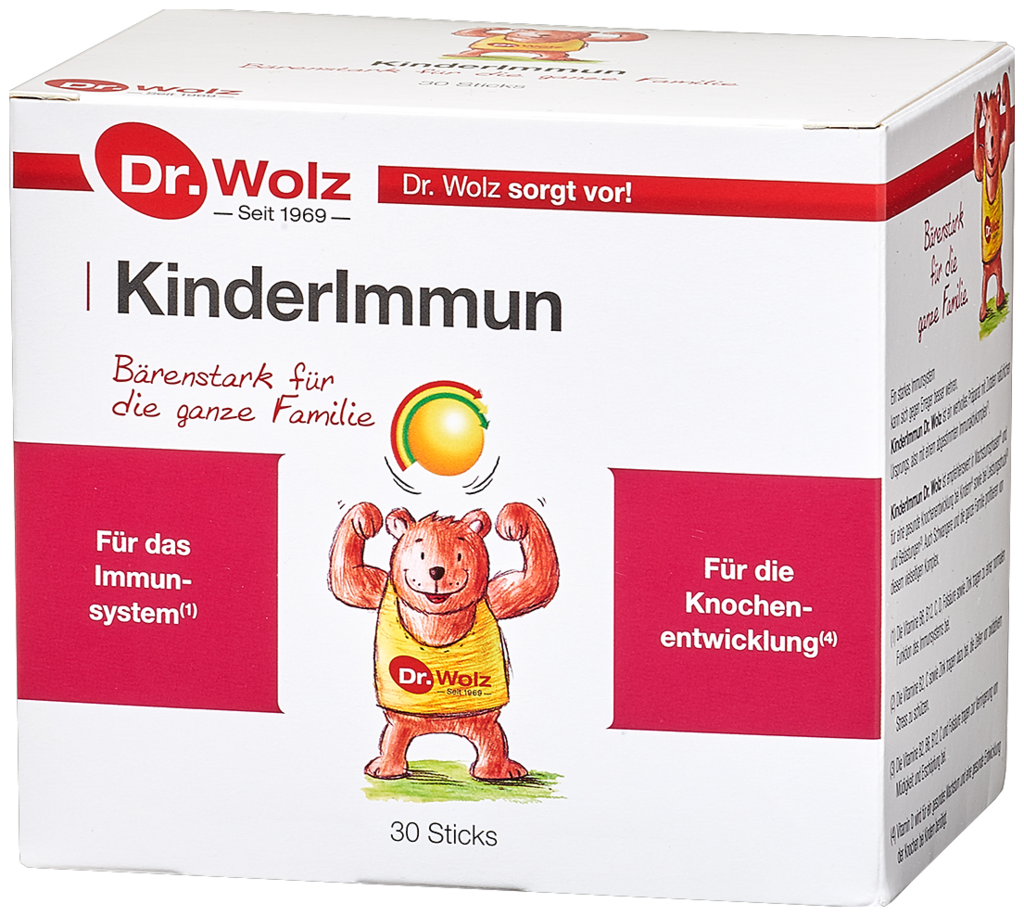 The active complex in KinderImmun Dr. Wolz consists of various natural and valuable ingredients for a healthy immune system. The immune combination was developed for the whole family, pregnant and breastfeeding women. Child Immune Dr. Wolz is recommended for special loads and growth.