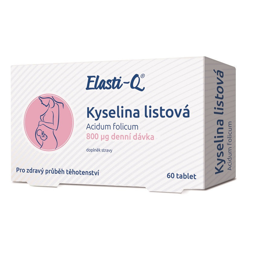 Elasti-Q® Folic Acid 800 is a folic acid preparation that helps the process of cell division and differentiation, contributes to normal hematopoiesis and germinal growth during pregnancy. In the composition you will find vitamin B6, which contributes to the normal production of red blood cells and hemoglobin, and normal function of the immune system.