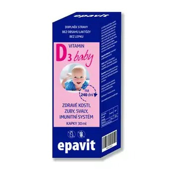 Vitamin D3 for a healthy immunity of your children . Vitamin D3 is produced in the skin by the action of sunlight. Especially with a long-term lack of sunlight, it is advisable to supplement it with food or food supplements. EPAVIT Vitamin D3 Baby in the form of drops is intended for infants and toddlers (from birth to 3 years). Free of lactose and gluten.