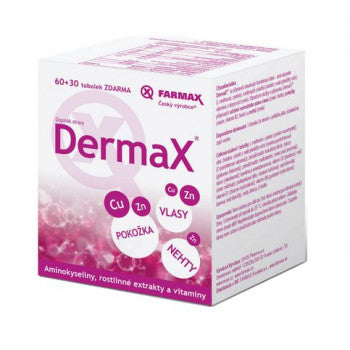 DermaX ® is a preparation containing a combination of substances - amino acids (L-methionine, cysteine), plant extracts (horsetail horsetail extract), vitamins and trace elements. The ingredients in DermaX® contribute to maintaining normal hair condition (zinc, biotin), skin (niacin, vitamin B2, biotin) and nails (zinc).