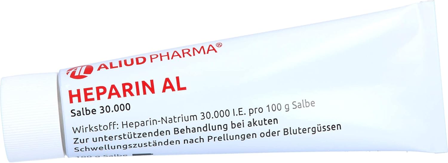 Ingredients: active ingredient per 1 g ointment: 300 IU. Heparin sodium from pork. Other ingredients: cetyl stearyl alcohol, levomenthol, medium-chain triglycerides, disodium edetate 2 water, oleate, propylene glycol, sorbic acid, citric acid, palmitoylascorbic acid, perfume oil sport PH, (R,R,R)-a-tocopherol, potassium sorbic. bat, purpurpurpurpurWater; unless otherwise prescribed by a doctor, Heparin AL ointment should be applied 30,000 2 to 3 times a day thinly and evenly to the affected area. Do not use on open injuries to the skin. Then wash your hands thoroughly. Heparin AL ointment 30,000 must not be used for more than 10 days. The total dose should not be exceeded without medical or pharmaceutical consultation. In general, careful dosage must be paid especially for infants, toddlers and the elderly. After opening, Heparin AL ointment 30,000 is durable for 6 months. If a cooling effect is desired in addition to the product properties, Heparin AL Gel 30,000 is a good alternative.