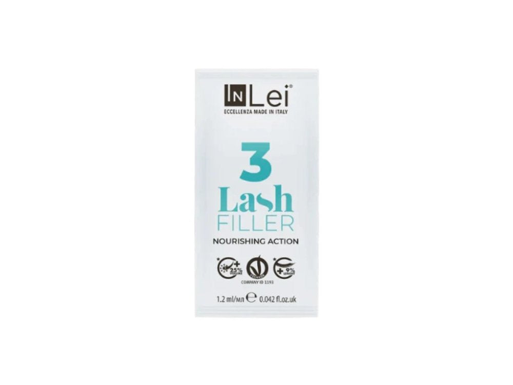 The original composition of InLei Filler 3 allows the microparticles present to easily penetrate the inside of the eyelash and bind to its keratin fibers. Thanks to the “Three Regeneration” complex and appropriate eyelash preparation with InLei Form 1 and InLei Fix 2, a stable result and highly effective nutrition and increase in eyelash volume are guaranteed; it gives the eyelashes a silky appearance. The LASH FILLER procedure has the ability to reach the hair follicle, which nourishes and affects its structure even in the following months. InLei Filler 3 also supports the proliferation of keratinocytes inside the fiber.