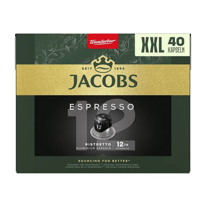 Jacobs Espresso Ristretto coffee capsules are designed to better preserve the aroma and provide the ideal pressure for a perfect espresso or lungo extraction. The result is an intense taste experience and delicious coffee with a thick, fine crema. Now also available in a large, more convenient package, allowing you to enjoy your favorite coffee even longer.