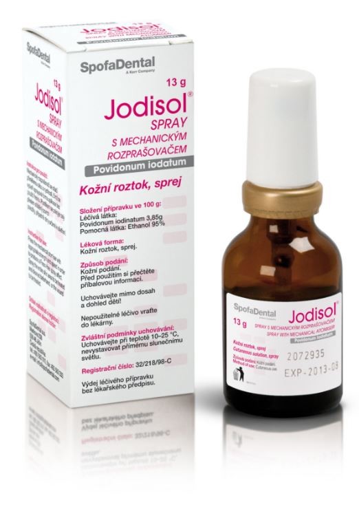Jodisol Spray is a highly effective disinfectant. It is a 3% alcohol solution of a complex compound with a wide range of uses. It has a wide range of effects on the multiplying forms of microorganisms. The iodine bound in the complex is released in a concentration sufficient to disinfect but does not damage the skin or mucous membrane. Full effect occurs 1 - 5 minutes after use. It permanently kills the growth of pathogenic microorganisms on the skin and mucosa.