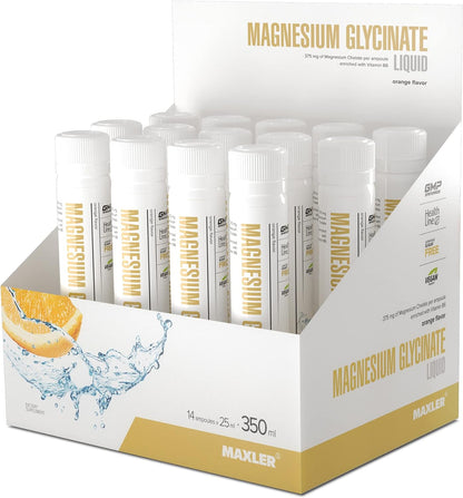 MAXLER Magnesium Glycinate Liquid, Orange , 14 x 25 ml,