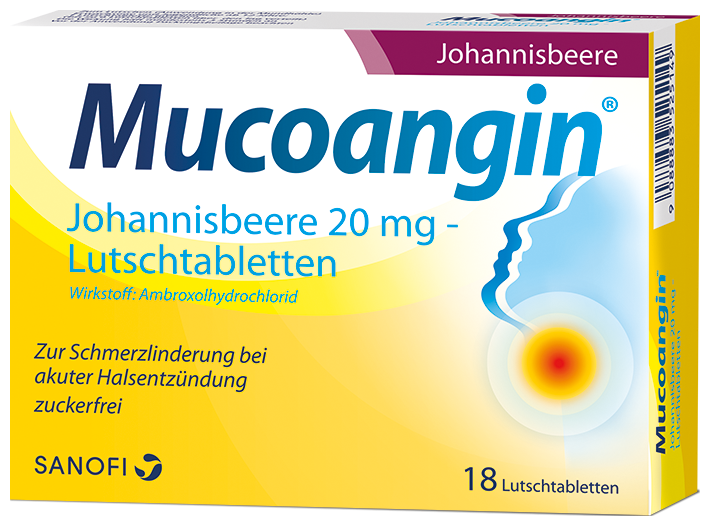 As soon as you suck the Mucoangin® lozenge, the local anesthetic ambroxol has an analgesic effect. The active ingredient penetrates deeply and sore throats are specifically combated where they arise.