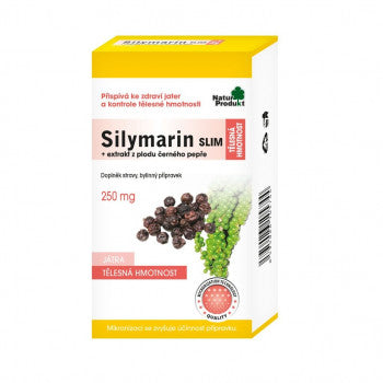Healthy liver and weight control . Silymarin Slim contains a unique combination of Milk Thistle Extract and Black Pepper Fruit. Black pepper fruit contributes to weight control , affects digestion and acts as an antioxidant. Milk thistle helps to cleanse the body , normal digestion and positively affects liver function . It contributes to normal blood sugar levels and helps the body's natural defenses.