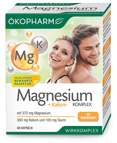 The Ökopharm® active complex in magnesium + potassium complex capsules is composed of magnesium, potassium and other micronutrients. It supports normal muscle function and helps maintain normal blood pressure. Magnesium supports a balanced electrolyte balance.