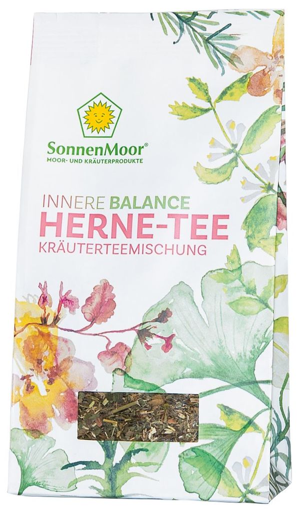 Herne tea is a herbal tea blend and, like all SonnenMoor products, a purely herbal natural product made from high-quality herbs of pharmacopeia quality. The harmonizing relaxation tea has a calming and balancing effect. Drunk in the evening, it ensures a restful night. Our anti-stress tea consists of a large number of valuable herbs of predominantly pharmacopeia quality. Lemon balm leaves, ground ivy, gingko leaves, bedstraw, rosemary, yarrow and hollow toothwort unfold a soothing feeling and ensure that you can face your everyday life calmly and relaxed. Due to the soothing herbal mixture of Herne tea on heart and nerves, it can be drunk daily. For children, we recommend the tea for exam anxiety or school stress.