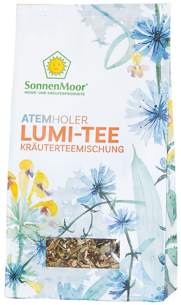Lumi-Tee is a product from SonnenMoor. The high-quality tea consists of valuable, beneficial herbs such as hollow toothwort, buckhorn, chicory, eucalyptus leaves, Iceland moss, chamomile, thyme, deadnettle, liquorice root, elderflower and linden blossom. This natural, versatile aid has numerous areas of application and, with daily use, the cold season cannot harm you. This purely natural product supports the airways and gives a harmonizing and liberating feeling in the lungs, throat and pharynx. Enjoyed hot, this tea is a helpful partner for the bronchi and airways. As a purely natural product of pharmacopeia quality, lung tea contains no preservatives or artificial flavorings.