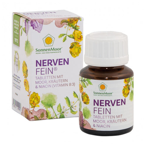 Use of NERVENfein tablets: nervous system, slight nervousness - take 1 tablet with liquid once a day after breakfast. The recommended consumption amount should not be exceeded without professional advice. 1 tablet (= a daily dose) contains 315 mg moor powder, 210 mg herbs and 3.2 mg niacin (corresponds to 20% of the nutrient reference value NRV according to the food information regulation). The application and application possibilities of the SonnenMoor products are very diverse.