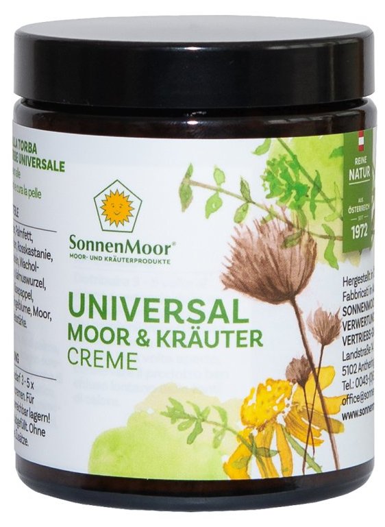 With the moor ointment with herbs you have a universal cream at home, which is not called that for nothing: the purely natural product, without chemical additives, is ideal for daily use. With its unique mix of herbs and the effective moor, the universal moor ointment with herbs has been a highly valued SonnenMoor classic for decades. Purely natural, carefully selected herbs and plants such as arnica, spruce needles, quendel, juniper berries and horse chestnut, as well as the particularly soothing moor from Salzburg-Leopoldskron soothe the joints and relieve tension. The moor ointment is also indispensable for the care of scars, sunburn and skin irritation after shaving.
