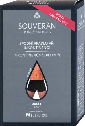 SOUVERÄN incontinence underwear for men is intended for men suffering from urine leakage. It guarantees a permanent alternative to pads and disposable underwear. Incontinence underwear provides comfort as when using ordinary underwear - the fabric removes moisture and ensures a feeling of dryness. It prevents the formation of unpleasant odors with antibacterial protection and provides high absorption thanks to its breathable fabric.