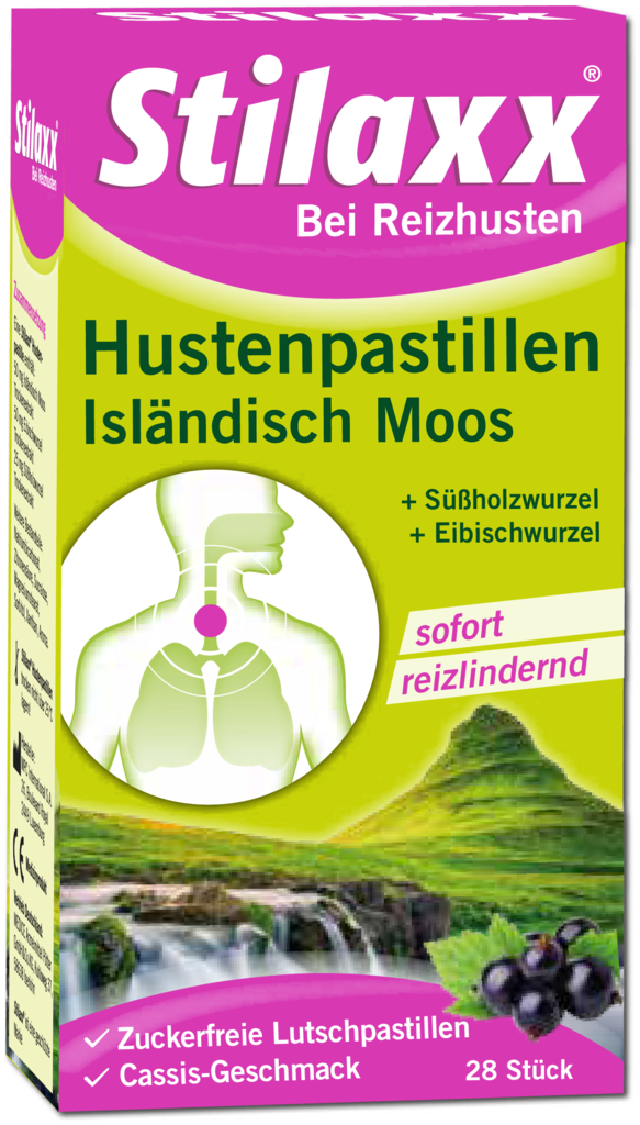 The Stilaxx ® cough pastilles relieve dry, dry coughs quickly and for a long time thanks to their soothing effect from the natural plant extracts of Iceland moss, marshmallow root and liquorice root - the 3-fold complex of the Iceland formula.