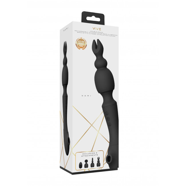 Vive is a new phenomenon in the world of erotic toys . From his workshop also comes Nami, a massage head as a masterpiece with a luxurious minimalist look and dynamic shape. Thanks to the innovative rechargeable technology, it will offer you 10 different vibration patterns of various intensities. It hides 2 motors with separate control and charging via USB cable. The first of the motors is hidden in the head and the second in the handle, where it generates vibration and pulse waves under the surface that will delight your g-spot. The soft flexible head will delight your intimate parts and tired muscles all over your body, and you can use the other end for sensual penetration. Nami is made of high-quality silky soft silicone, which is also safe for the body and you will love it at first touch. The package also includes 4 different attachments with which you will discover even more exciting diversity. Enjoy the feeling of absolute satisfaction!