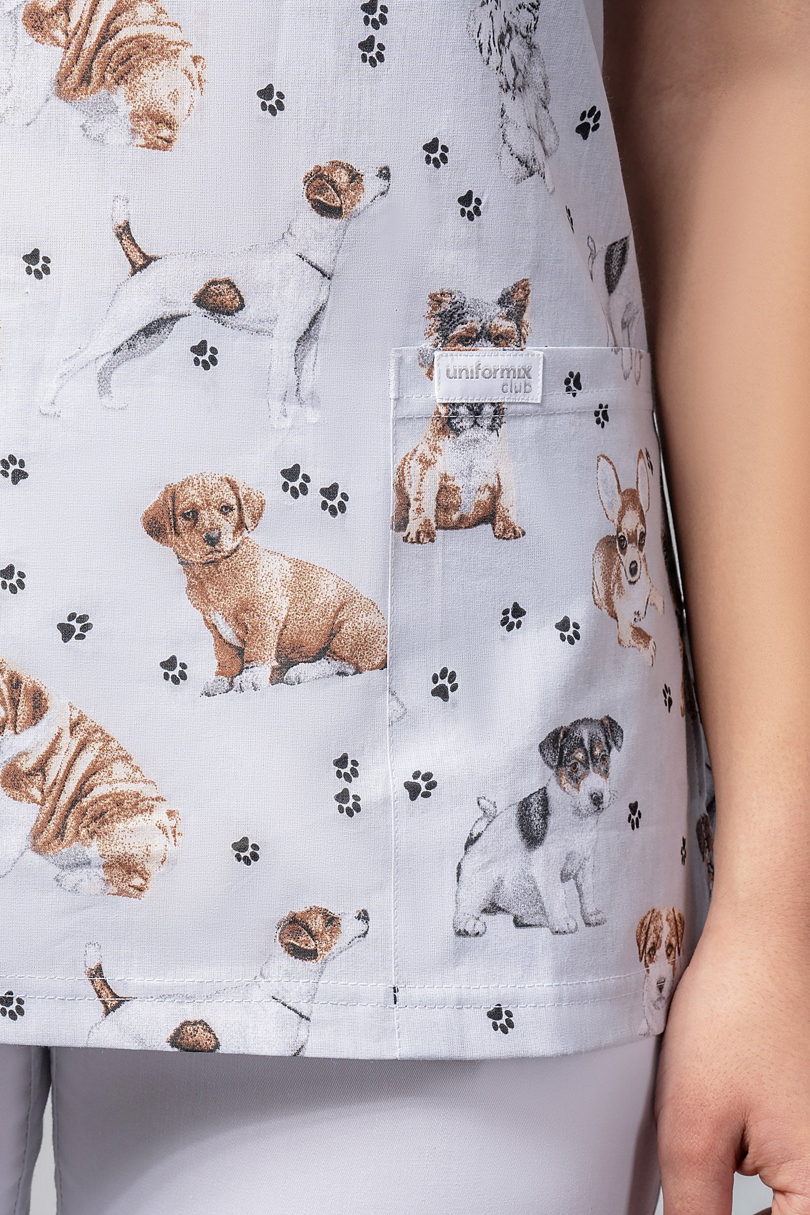Women's medical shirt Halena CM1001P dogs, gray background