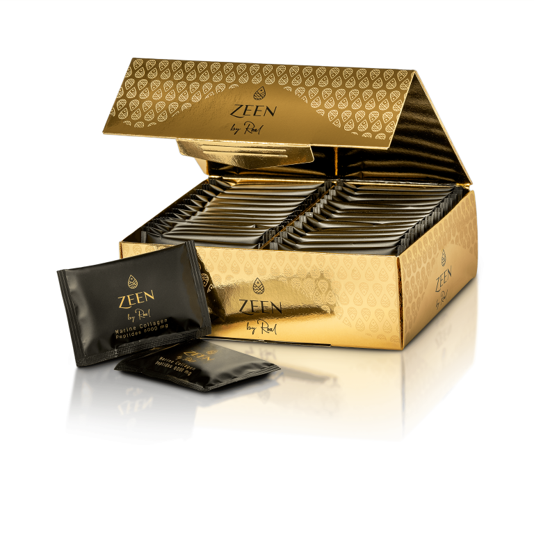 ZEEN by Roal 100% pure French sea collagen with lemon flavor is of premium quality without chemical additives and artificial colors. Soluble powder in fluid that helps beauty (skin, hair, nails) and health (bones, joints, cartilage). Each sachet contains collagen type I., II., III. in the form of a powder that is readily soluble in water, fruit juice (grapefruit juice is not recommended), milk, or other cold liquid. Thanks to the content of three-component collagen type I, II, III, it is well usable for the regeneration of the musculoskeletal system, as well as the skin, hair and nails. It is well absorbed and retains its biological value. ZEEN by Roal 100% pure French sea collagen with lemon flavor is also free of fishy odor and taste.